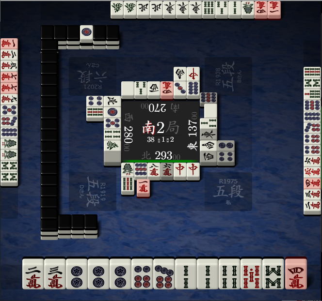 した。最初の方は早いリーチに対してろくに安全牌もないので、多少攻めながら切る