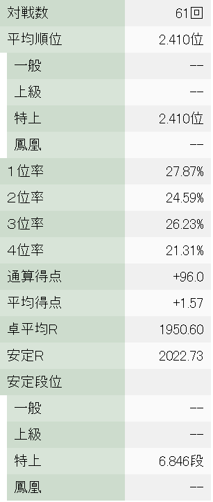 これを月間通してできれば、6段に昇段することはおろか、鳳凰卓復帰も目指せるでし