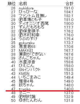 47位!まあまあといったところでしょうか。