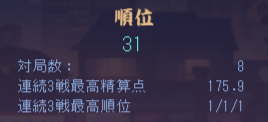 とりあえず8戦打って、3連続トップは達成したものの、素点は全く足りず。それでも31位ということはやはりかなりの人が参加したのでしょう。